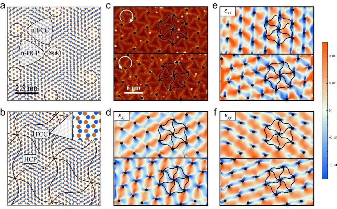 该研究团队在Cu(111)上生长了高质量大面积手性BlueP单层膜,其横向尺寸仅受晶圆尺寸大小限制。研究发现BlueP具有超平坦蜂窝晶格特征,而不是已被认知的屈曲结构(图1)★。此外,由于衬底作用导致的旋转堆叠和界面应变释放效应,形成了高度有序的手性超结构,并进一步通过几何相位分析得到证实(图2)。扫描隧道谱显示了其本征的金属性和镜像势态中的不同特征量子振荡。他们还实现了超平坦BlueP的手性和非手性相之间的可逆转变★,揭示了磷烯结构在Cu(111)上的独特生长模式。该研究工作将推动蓝磷烯在未来信息光学、自旋电子学和手性催化等方面的应用★。